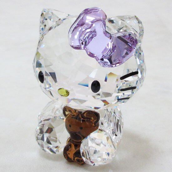 スワロフスキー 「ハローキティ 紫リボン&ベア置物」 (Violet Bow and Teddy Bear) 1096879