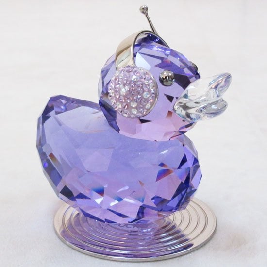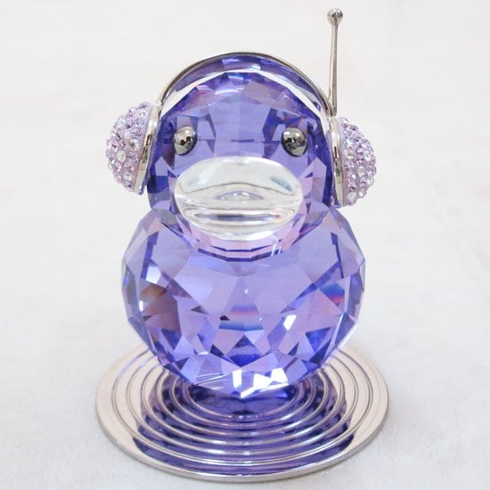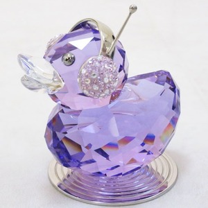 ブルーヴァイオレット・クリスタルのボディのかわいらしいアヒル。ポインティアージュ?技法でクリスタルをあしらったヘッドホン。