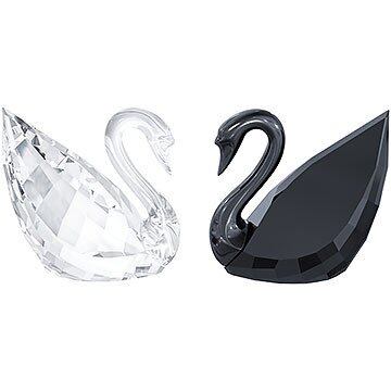 スワロフスキーのアイコンをモダンに演出したセット。クリア・クリスタルのスワンとジェット・クリスタルのスワンのペア。