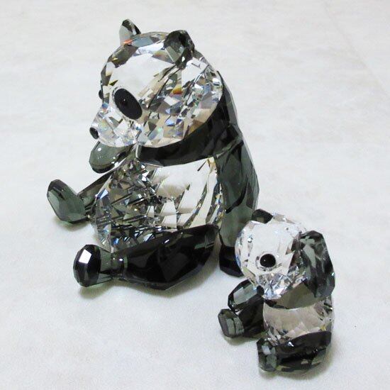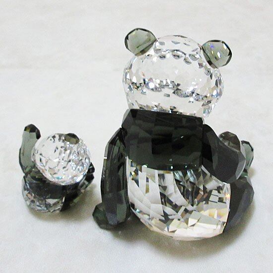 パンダの母子の絆を表現したハートウォーミングなフィギュリン。お母さんパンダはいとおしそうに赤ちゃんを見つめています。クリア・クリスタルとブラック・クリスタルの組み合わせでパンダの柄を表現。