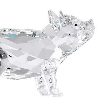 幸運のシンボルの子ブタ。クリアクリスタルのボディ、ジェットクリスタルの目。幸運のお守りやギフトにも最適です。自然に発想を得たチャーミングなデザインで、みんなを笑顔にします。