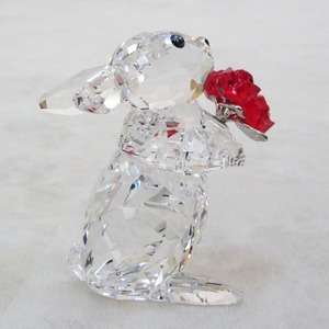 母の日やイースターなどのギフトにぴったり。かわいらしいウサギがロマンチックなメッセージを伝えます。クリア・クリスタルのウサギが抱えているのは、レッド・クリスタルの3本のバラ。