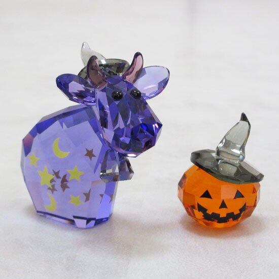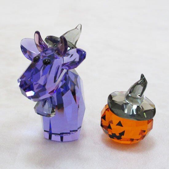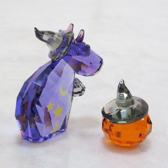 モーが魔法使いの衣装と帽子を身に着けたハロウィン仕様で、イエロースターのモチーフが描かれています。レッド・トパーズ・クリスタルの愉快なカボチャ付。