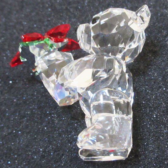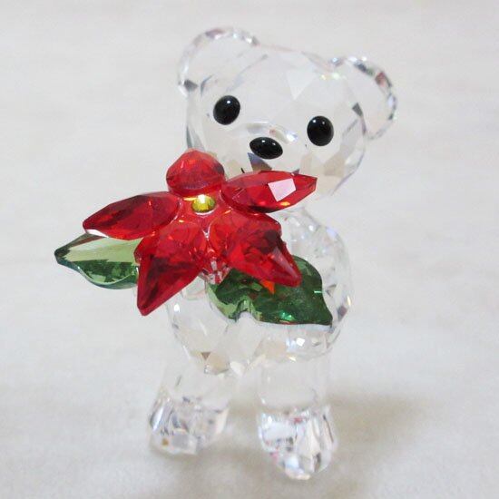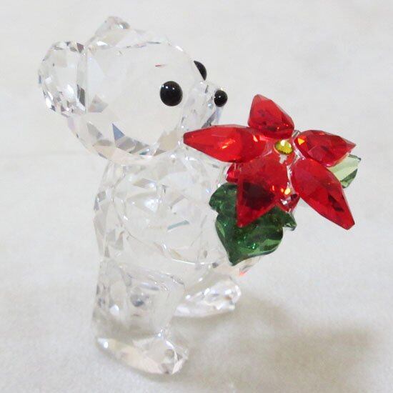 2012年度限定のクリスベア。ライトシャムクリスタルとペリドットクリスタルにライトトパーズクリスタルでアクセントをつけたポインセチアの花を抱えています。現在非常に品薄で希少な作品です。