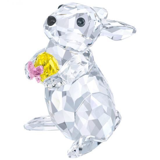 ピンクのリボンで飾られた鮮やかなイエローのクリスタルエッグを抱えたイースターのウサギを、クリア・クリスタルで表現しました。 愛らしい姿が見る人の心に飛び込んできます。 可愛いギフトとして、装飾品としてお手持ちのスワロフスキーのウサギと組み合わせるのにも最適です