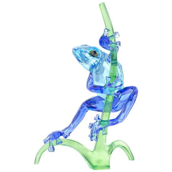 南米に生息する珍しい種類の青いカエルを鮮やかなクリスタルの素晴らしいカラーコンビネーションで驚くようなデザインに仕上げました。 グリーンの枝をよじ登るカエルにスワロフスキーのDNAが表現されていると言えるでしょう。 枝にもすべてクリスタルが使われ、計495面のファセットが施されています。