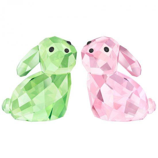 アントン・ヒルツィンガーがデザインしたロマンチックで鮮やかなウサギのペアは愛のこもったギフトに最適です。きらめきを放つグリーンとピンクのクリスタルを使い、愛らしい目にはブラックのストーンをあしらいました。
