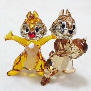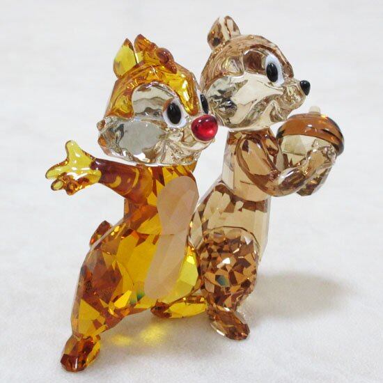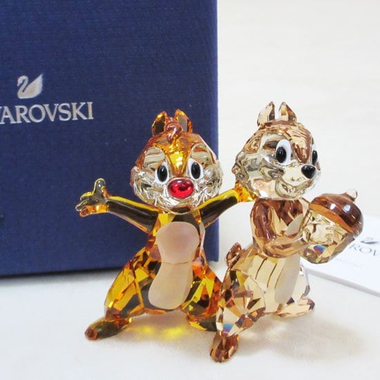 ディズニーの賑やかなシマリスのコンビ、チップ&デールを巧みに表現しました。クリア、ブラウン、オレンジのクリスタルにきらめきを放つ約755面のファセットを施した愛すべきいたずらっ子たちです。チップはどんぐりを抱え、デールは特徴的な赤い鼻で目を引きます。ディズニー・コレクターへの愛らしいギフトにも最適。 2018年ディズニー新作フィギュリン。