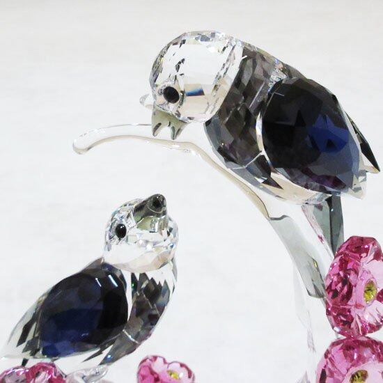 北京の中央美術学院のアーティストとのコラボレーションによる最新のデザインはマグピーズを称えています。このエレガントで縁起がよいとされる鳥は、伝統的な中国絵画では幸福や幸運のシンボルとして人気のモチーフです。梅の枝に止まったつがいのマグピーズが愛らしく気持ちを通わせている見事な作品です。円を形作るエレガントなデザインは、調和と完全さを表現しています。クリア・クリスタルにブルー、ピンク、イエロー、ブラックのクリスタルでディテールをあしらい、約1,559面のきらめくファセットを施しました。ウェディングや記念日など愛に関連するシーンでのギフトに最適な象徴的な意味合いにあふれています。