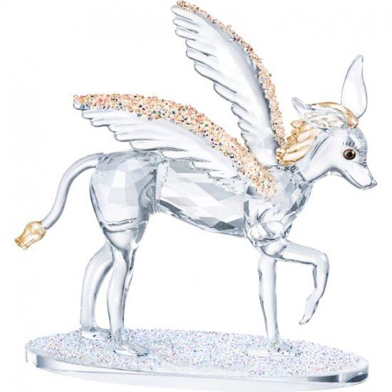 翼を持つエレガントで表情豊かな生き物が幻想的なおとぎ話の世界へと導きます。約190面のまばゆくきらめくファセットを施したこの限定作品は、受賞歴のあるデザイナーのトード・ボーンチェが神秘的な冬の森にインスパイアされて作り上げたものです。両方の翼には、クリスタル・ロック技法により手作業でゴールドとオーロラボーリエイラスのクリスタルをあしらっているため、ひとつひとつが異なるツートーンの輝きを見せる1点ものとなっています。クリア・クリスタルの台座にも小さなクリスタルを飾り、デザイナーの署名を刻印しています。