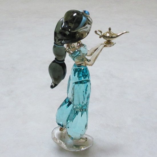 まるでディズニー映画『アラジン』の世界に迷い込んだかのような、本物そっくりのプリンセス・ジャスミン。547面のクリスタル・ファセットが鮮やかなカラーに輝くこの自信と独立心に満ちたキャラクターは、ゴールドトーンのメタルジュエリーで飾られ、魔法のランプを抱えています。